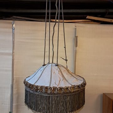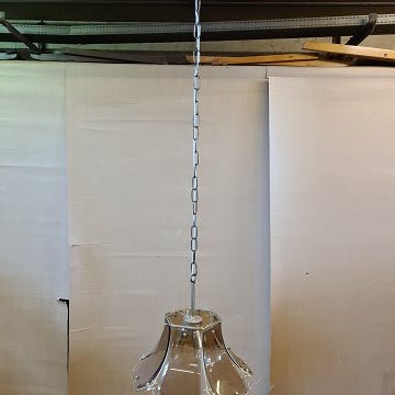Loftlampe i metal med blomster af hård plast,den er fra 2000erne.