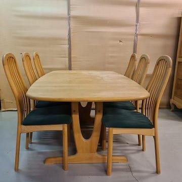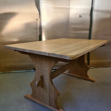 Spisebord i massivt bøgetræ med 2 tillægsplader fra 1990erne.