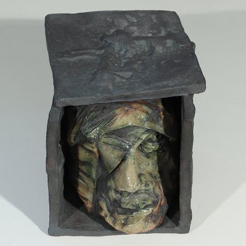 Væghængt unika relief i glaseret stentøj udført af Tue Poulsen.