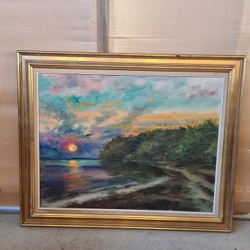 Maleri af Frederiksø, olie på læred fra 1950erne.