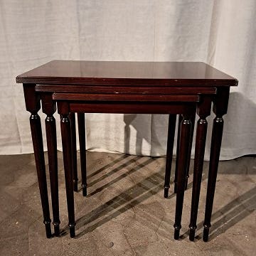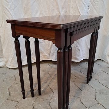 3 Inskudsborde i fineret og bejset bøgetræ fra 1960erne.