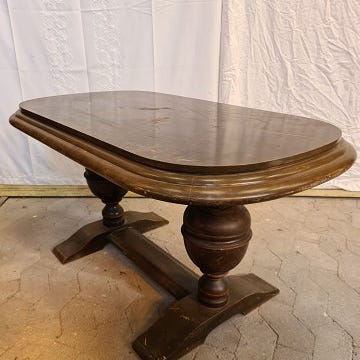 Sofabord i fineret bejset birketræ, bordpladen trænger til en kærlig hånd.