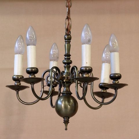 6-armet kirkekrone i bruneret messing, 47 cm i diameter, 1930-1940