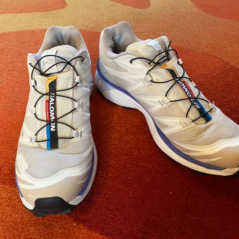 Kun brugt få gange af korte perioder. Eneste synlige ‘slid’ er at skriften på den ene sål er faldet lidt af.