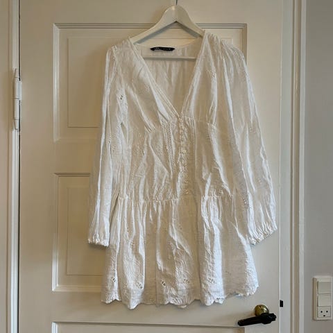 Hvid Zara kjole med sorte striber. Slids bagpå.
