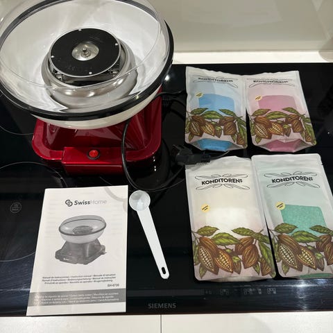 Denne candyfloss-maskine er ideel til fester, fødselsdagsfester og meget mere. Du skal blot hælde sukker ned i maskinen og indefor få minutter vil du kunne nyde frisk candyfloss. Sådan fungerer den: før maskinen tages i brug, skal du forvarme den i cirka 5 minutter. Når hovedet roterer, skal du stoppe maskinen i et kort øjeblik for at fylde den med sukker. Start maskinen igen øjeblikkeligt, lad den ikke køle ned. Når maskinen producerer de første "tråde", skal du fange dem med en pind. Hold pinden lige et kort øjeblik og vikl det spundne sukker rundt om den. Den vil blive større, hvis du holder pinden vandret. Efter lidt øvelse kan du overraske børnene med candyfloss. Pakken indeholder 1 candyfloss-maskine, 1 måleske og 10 bambuspinde. Farve: Hvid Materiale: PP + aluminium + rustfrit stålMål: 28 x 26 x 17,3 cm (L x B x H)Skålens diameter: 26 cm Strømforsyning: 220-240 V ~, 50 HzEffekt: 480 WPakken indeholder: 1 x candyfloss-maskine, 1 x måleske, 10 x bambuspinde Dette apparat er ikke beregnet til brug af personer (inklusive børn) med nedsatte fysiske, sensoriske eller mentale evner eller manglende erfaring og viden, medmindre de er under opsyn eller er blevet instrueret i brugen af apparatet af en person, der er ansvarlig for deres sikkerhed. Dette produkt er ikke et legetøj. Børn må ikke lege med apparatet.