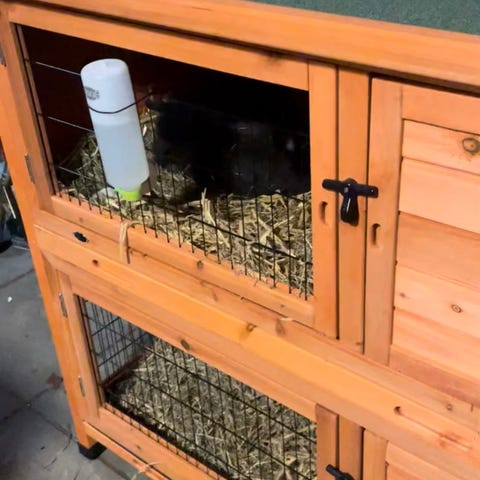 Dette luksus dyrebur i træ er velegnet til at holde kaniner og andre små dyr. Det har et kvalitetsdesign med et trådnet i jern, så du kan holde øje med dine kaniner, samt forhindre uforudsigelige ulykker. Buret er lavet af kvalitetsfyrretræ, som er malet til at modstå udendørs brug og slid. Dørene er nemme at åbne og lukke, så du nemt kan fodre dine kæledyr. Dette er et bur af høj kvalitet, som passer godt til dine kæledyr og samtidigt ser godt ud i din have. Bemærk: Vi anbefaler, at du placerer kaninburet under et halvtag eller lignende. Dette vil også forlænge dets levetid. Materiale: Fyrretræ med malet finish, krydsfiner Samlet mål: 98 x 50 x 41 cm (L x B x H)Slidstærkt trådnet i jernVejrbestandigLet at samleEgnet til kaninerIndvendige mål: 45,5 x 96 x 40 cm (B x D x H)