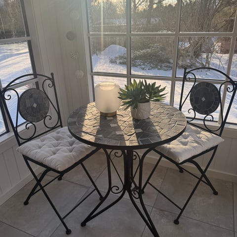 Det pulverlakerede jernstel gø bordet meget robust, mens den keramiske bordplade er nem at rengøre. Bordet er nemt at samle. Bemærk, at dette bord ikke er egnet til at stå udenfor i koldt vejr.
