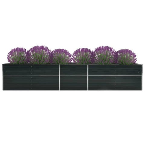 Giv dine planter eller blomster et nyt hjem med vores moderne haveplantekasse! Denne firkantede, hævede plantekasse i galvaniseret stål kan rumme et betydeligt antal af planter eller blomster. Rigeligt med plads: Dette højbed er dybt og bredt nok til at rumme en stor mængde jord og give rigelig plads til dine planter, grøntsager, krydderurter og blomster.Åben bund: Det bundløse design giver god dræning til planterne og forhindrer ophobning af vand, som får planternes rødder til at rådne. Det gør også, at planterne bedre kan optage næringsstoffer. Du kan placere den på jord, græs eller betongulv.Holdbart materiale: Denne krukke er fremstillet af galvaniseret stål og udstyret med indvendige støttebeslag, så den er yderst robust og holdbar.Foldet kant: Derudover har kanten på krukken et foldet design, så der ikke er nogen farlige skarpe kanter. Denne haveplantekasse er nem at samle. Farve: AntracitgråMateriale: Galvaniseret stålMål: 100 x 100 x 77 cm (B x D x H)Med en antracitgrå finishMed foldede kanter for ekstra sikkerhedÅben bund