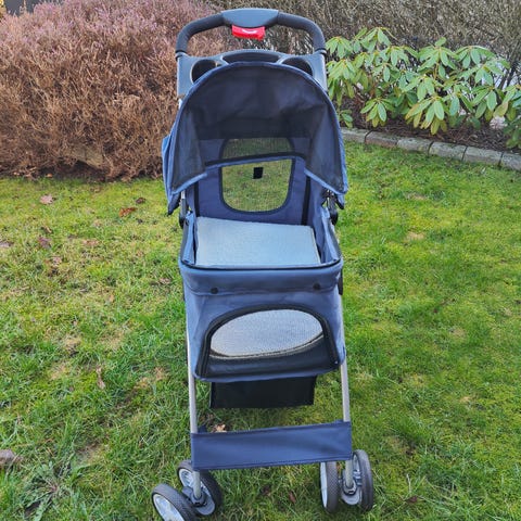 Denne hundeklapvogn er komfortabel og transportabel, så du kan tage dine skønne hunde, katte eller andre kæledyr med dig på gå- eller vandreture.