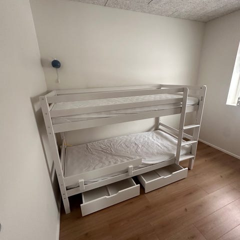 Denne metalkøjeseng er elegant og funktionel, hvilket gør den perfekt til ethvert værelse med begrænset plads. Den vil være et glimrende valg til dine børns værelse, da den tilføjer ekstra sjov inden sengetid. Køjesengen er fremstillet af robust og pulverlakeret metal, så den garanterer fremragende stabilitet og holdbarhed. Den er designet med sikkerhed i tankerne, så den kommer med sideskinner samt en robust stige. Hele sengestellet har en robust konstruktion af metalrør, hvilket gør den langtidsholdbar og egnet til daglig brug. Sengen er nem at samle. Bemærk, at madrasser ikke er inkluderet i pakken. Farve: GråMateriale: Metal Produktmål: 208 x 96 x 150 cm (L x B x H)Egnet madrasstørrelse: 90 x 200 cm (B x L) (madras medfølger ikke)Inkluderer sikkerhedsskinner og stige i sidenMontering/samling påkrævet: Ja