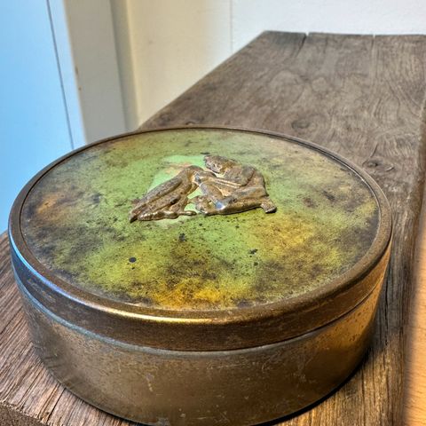 Skøn lille platte/skål med et buttet barn i fri natur. Brug den til smykker eller hæng den op på væggen i et smukt bånd