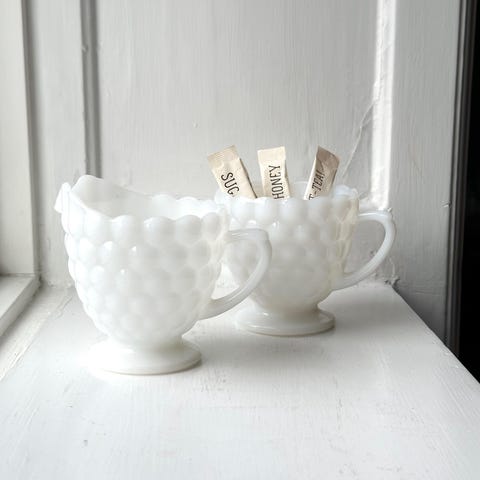 Sukker og fløde, opalineglas på fod, m druer og blade, sætpris