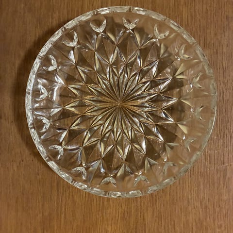 Glastallerkener, ravfarvet glas med "håndtag", 4 stk samlet, NB