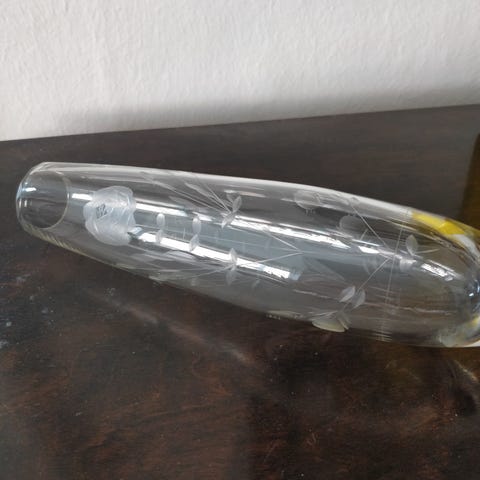 Høj fløjtevase med smukke ciseleringer, også på foden og i kanten