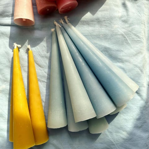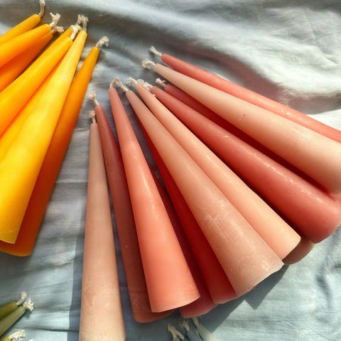Hvert lys er håndlavet, af plantefarvet bivoks