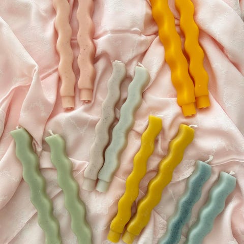 Hvert lys er håndlavet, af plantefarvet bivoks