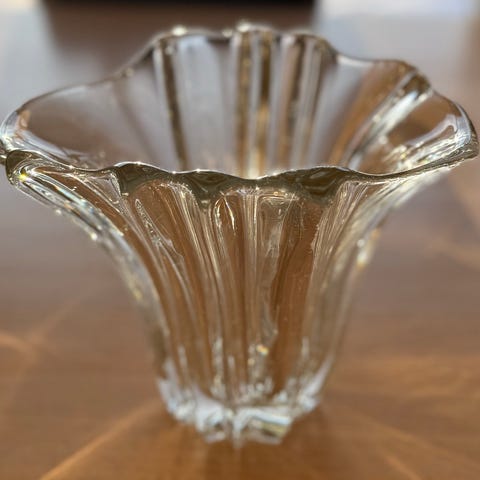 Stor glasvase, hvid m blå prikker