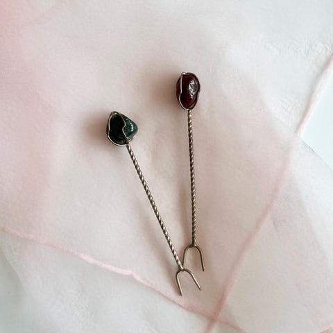 6 guldbelagte 18-8 stålgafler i original æske - til pålæg, tapas, østers, snegle…