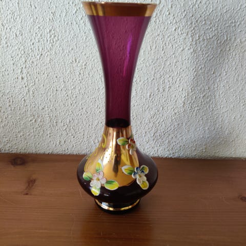 Minivase af lilla glas, med smuk dekoration