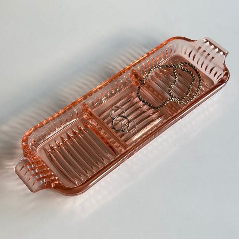 Skønt lille cabaretfad af presset glas med frugtmotiver. Perfekt til snacks, smykker eller snolder