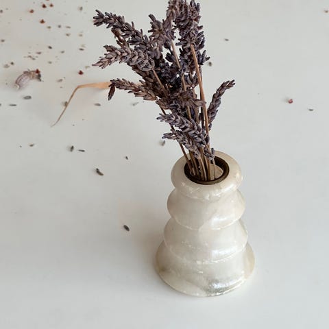 Alabastros Anircora, alabastervase med lyserød lak og blomsterprint