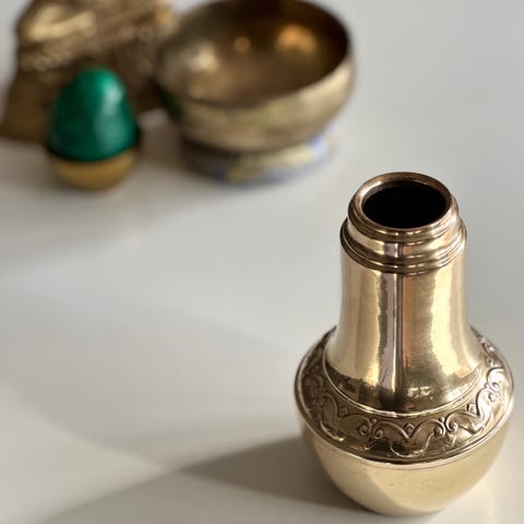 Patineret, indisk messingvase med ciseleringer