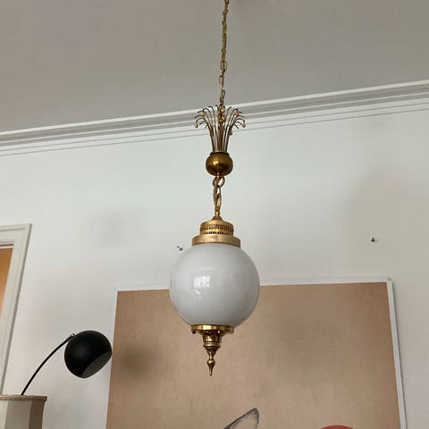 Antik pendel af klart og opalineglas, med helt ny ledning på 3 meter
