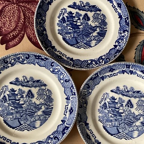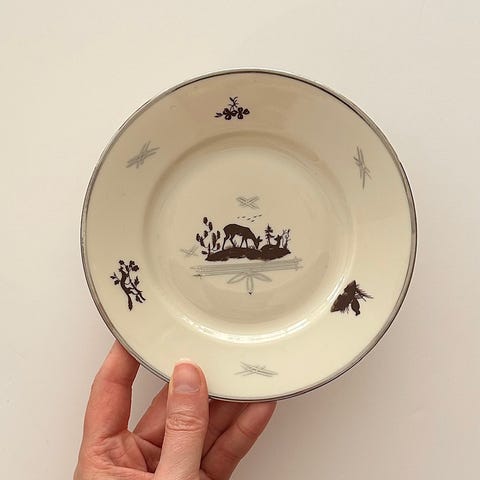 Cremefarvet kagetallerken m hjorte og platinkant