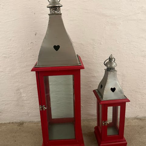 2 fine lanterner i hhv. grøn og pink