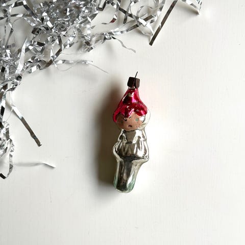 Vintage julekugle, alf m hvid hue