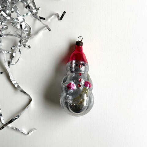 Sølv snemand m rød hue