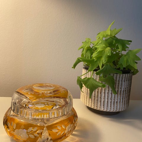 Smuk krystalskål fra Nybro, med neongrønt spil