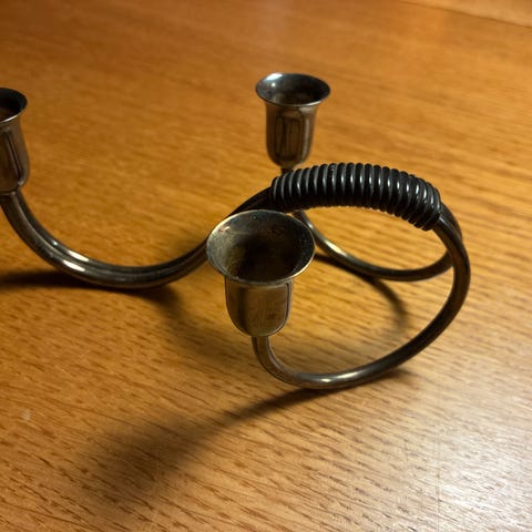 Smuk lille stage til almindelige lys. Stagen er i sølvfarvet metal produceret i Danmark