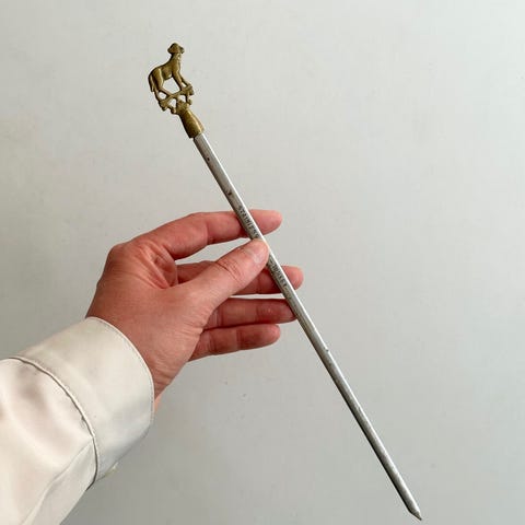 Kødspyd med grisefigur, produceret i Tyrkiet. Rustfrit stål