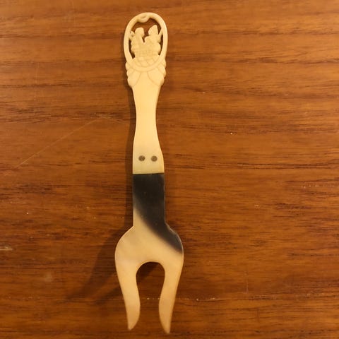 Vintage pålægsgaffel af rustfrit stål og ben