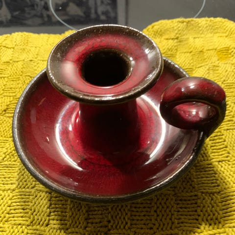 Keramik stage, Kammerstage.. Gul og brum indv..H 10 dia m øre 14 cm..