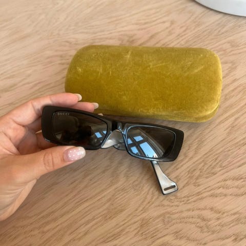 Gucci solbriller med lidt brugsspor derfor billigere pris (der er et lille mærke i venstre glas)