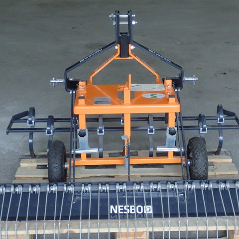 Fabriksny, Italiensk kvalitet, 200 cm bred, justerbar rive og skrabeblad, til trepunkts ophæng på traktor.