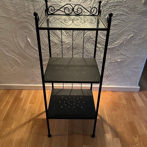 De to Ifö-lamper matcher stort set hylden - nuanceforskellen er så lille, at du ikke vil lægge mærke til den, når lamperne hænger over hylden. Lamperne koster 650 kroner for parret, da de har enkelte små nag i glasuren - se nærmere i lampernes egen annonce.