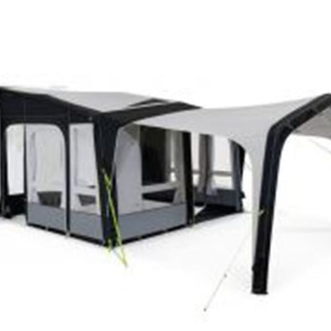 Dette solsejl lynes nemt fast på fronten af forteltet og giver et større overdækket opholdsrum.
