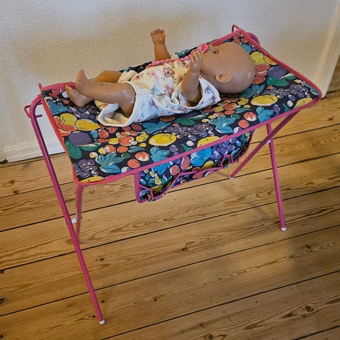 Retro puslebord til dukker. Det kan slåes sammen, så det ikke fylder meget bag døren.