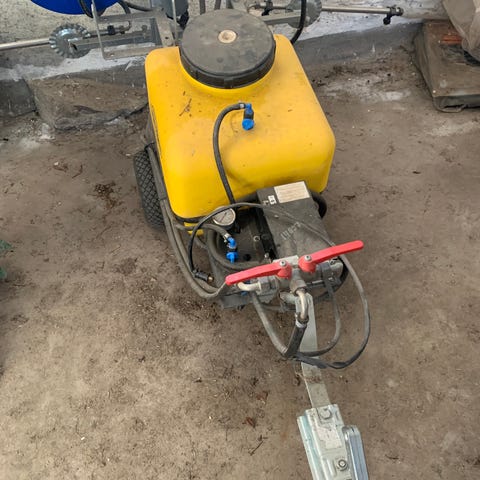 12 volt havesprøjte på vogn til fx ATV eller havetraktor. Store hjul og tank med plads til 100 liter. Leveres med lanse og 2 bomme med 4 og 6 dyser og pumpe. Korteste bom (4dyser) er 120 og bommen med 6 dyser er 220 cm bred. Specifikationer: Pumpe flow: 3,8 liter/min Pumpe tryk: 80 PSI (5,5 bar) Tank rumindhold: 100 liter Størrelse på vogn: 178 x 70 x 95 cm Egenvægt: 13,6 kg Længde slange: 6 meter Hjul: 4.8x4.00-8 Strømforbrug pumpe: 6 A Bombredde: 120/220 cm