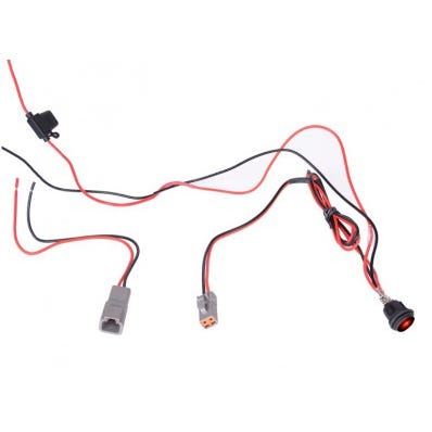 Kabel med relæ og stor vippekontakt til fx lysbro, lygtebro, blitzlys mm. Output til 2 enheder med en afstand på max 60 cm - kan forlænges efter behov. Mulighed for at tilkoble tændingslås. Max strømstyrke 40 ampere. Se også billeder af de forskellige dele. De strømførende kabler er desuden skærmet med en plastik kappe. Til både 12 og 24 volt relæ 40 A med 4 polet stik udtag til 2 lampe, blink mm. vippekontakt med lys til indbygning lukket sikringsbox 2 m ledning fra kontakt til relæ 2 m ledning fra relæ til 1. udtag Nr. T10+PLJ36-2