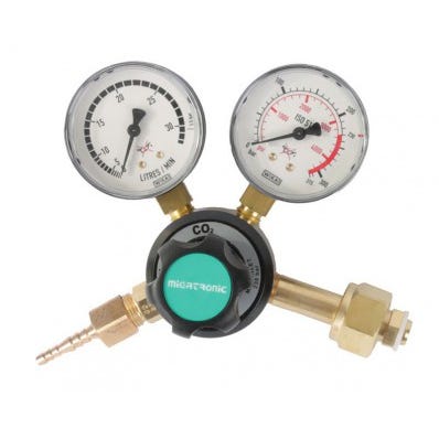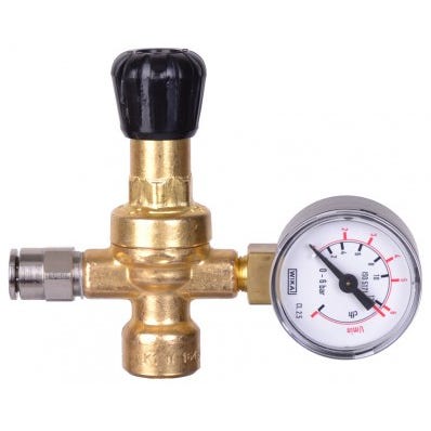 Regulator til 1 liters ilt flaske fx fra CFH nr. CF52505 - som blandet bruges i vores svejse- og loddesæt med ilt og gas (nr. SF3100) Kan muligvis passe til lignende flasker fra andre producenter. Med 4 mm studs Max 150 bar 11 mm Linksgevind (24 TPI) Brand: Mignon Nr. 8005791