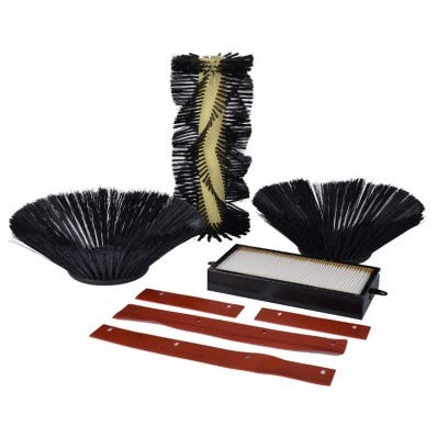 Sæt bestående af 2 sidebørster, 1 midterbørste, 1 filter og flere gummilister. Billedet kan afvige lidt fra det faktiske sæt. Passer kun til varenr. C200 solgt fra 2020.
