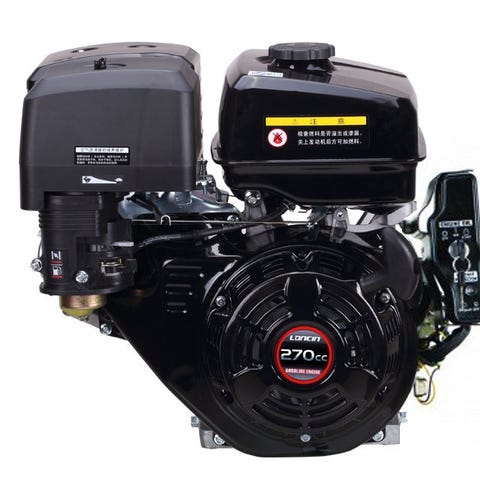 9 hk benzinmotor med el-starter og 1 tomme (25,4 mm) aksel. Motoren er udstyret med både rekylstart og el-start. Leveres med nøglebox, men uden batteri. Specifikationer: Slagvolume: 270 cm³ Elstart (uden batteri) Akseldiameter 25,4 mm (vandret) Aksellængde: 72 mm Aksel højde fra bund til midt: 13,5 cm 6,0 liter tank Skal påfyldes 0,95 liter olie (ikke inkl.) elektronisk tænding Støjniveau: 90,3 dB(A) 2.500-3.600 o/min Kompression: 8.5 : 1 Nr. 8005901