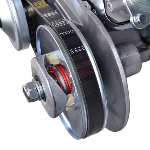 Vario kobling til benzinmotorer med 25,4 mm (1") aksel. Til max 11 hk motorer. Perfekt koblingssystem til offroad kørsel. Se også vores billeder af koblingen monteret på motor. Specifikationer: Hastighed: 2350 o/min (+/- 150) Max 11 hk motor Moment: max 19 Nm Gear udveksling: 3,2 til 0,8 Et sæt består af: 1 x kilerem 1 x Plastic cover 2 x remskiver 1 x Aluminium monteringsbeslag 1 x 10-tands tandhjul til #40/41 kæde 1 x Div. monteringsudstyr Klik på download for monteringsvejledning Nr. 1-vario På fanen video har vi 2 små film: 1) viser hvordan koblingen virker 2) viser hvordan man justerer koblingen til kørsel på forskellige typer underlag. Bemærk at kileremmen er asymmetrisk: den ene side/kant er lige mens den anden er skrå med en vinkel på 19 grader. Derfor kan kileremme også vendes forkert, så vær ekstra opmærksom ved montering.