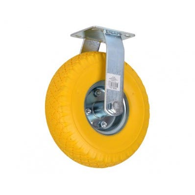Pakkeløsning med i alt 4 punkterfrie transporthjul str. 3.00-4. Sættet består af 2 hjul på drejefod og 2 hjul med fast fod. Hjulene passer sammen i højden (300 mm) og kan fx bruges til en vogn, hvor man har drejelige hjul foran og fast hjul bagerst. Gode til både eller til kørsel på fliser/jævnt underlag. Bemærk dog at punkterfrie hjul nemt får en “flad” side, hvis de står stille med belastning i lang tid ad gangen. Der er også derfor at disse transporthjul har en max belastning på "kun" 75 kg pr. hjul. Husk også at PU teknologien ikke er meget støddæmpende, så disse hjul er væsentlig hårdere end hjul med luft. Drejefod med kugleleje og smørenippel Dækstr. 3.00-4 (260x85) Max belastning pr. hjul: 75 kg Beslag str: 100 x 115 mm Totalhøjde: 300 mm Hjulene kan naturligvis også købes alene - se herunder.