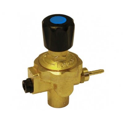 Regulator til 1 liters ilt flaske fx fra CFH nr. CF52505 - som blandet bruges i vores svejse- og loddesæt med ilt og gas (nr. SF3100) Kan muligvis passe til lignende flasker fra andre producenter. Med 4 mm studs (til slange med indvendig mål: 4 mm ) Max 150 bar 11 mm Linksgevind (24 TPI) Nr. 8007149